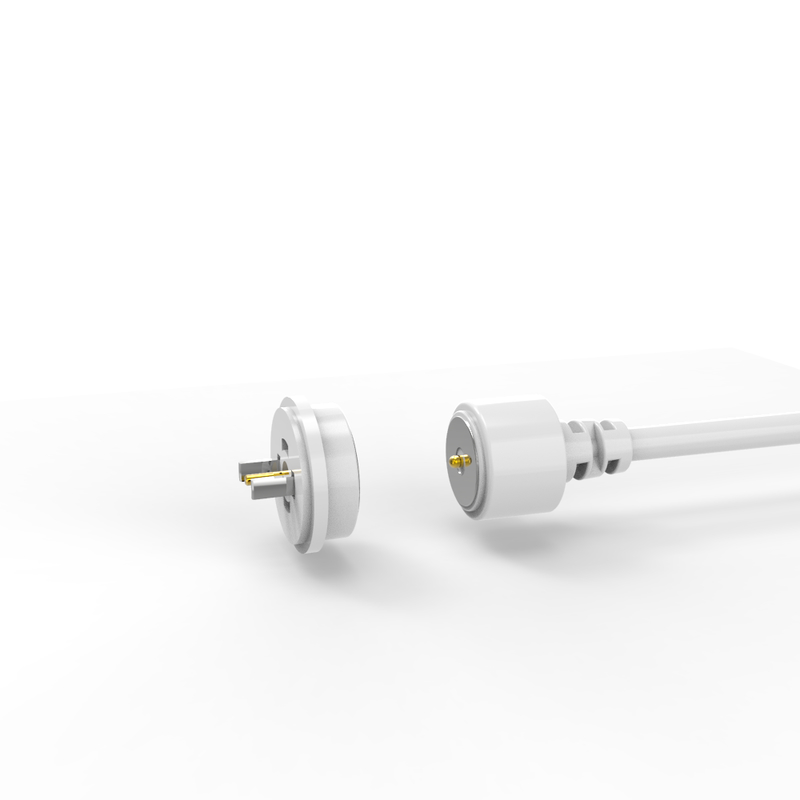 スマートウォーターカップ用の丸型白色磁気充電ケーブルコネクタ。磁気ケーブルコネクタは自動吸着の利点があり、操作が簡単です。ポゴピンは優れた電気伝導性を持ち、過酷な環境下でも腐食しにくいです。